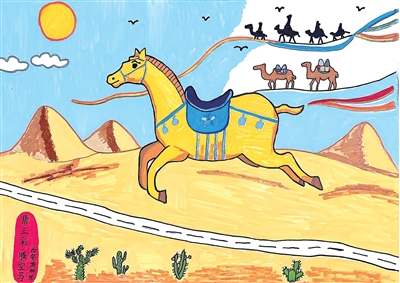 插画狮:《飞马越丝路》杭州市行知小学二(5)班 周敬泓