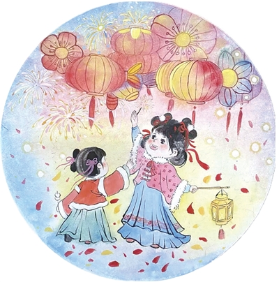 插画狮:《灯暖马年春》杭州市闻涛小学三(3)班 杨语彤