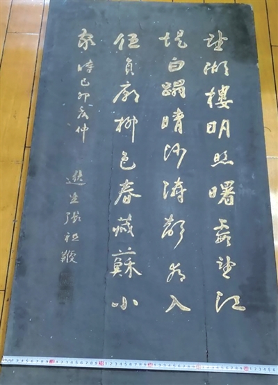 记者请教了文保专家,匾上应为唐代诗人白居易《杭州春望》的前四句——
