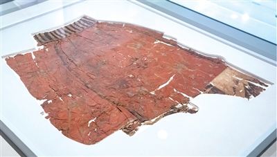马山一号墓出土的这条凤鸟花卉纹绣红棕绢面绵袴(kù),是我国迄今所见最早的裤子实物,被誉为“天下第一裤”。