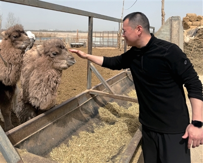 看着可爱的小骆驼,康康忍不住上手摸一下。