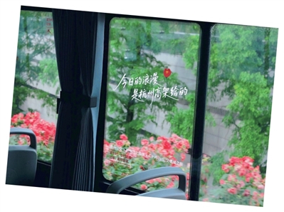 这不是电影场景,而是杭州公交推出的“City Bus·公交情绪之旅”项目。一张张印着浪漫短句的窗贴,贴在离窗边乘客仅20厘米的车窗上,成为流动的“情绪加油站”。