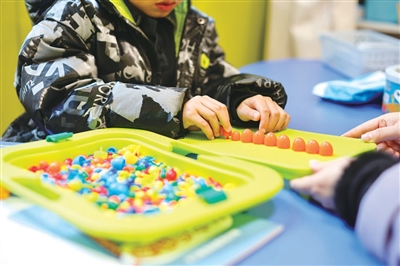 童童正在做手部精细训练