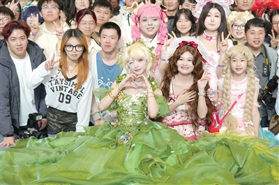 Lolita模特谢安然在HAHA漫展现场和粉丝大合影 本版摄影 记者 肖宽 俞建效