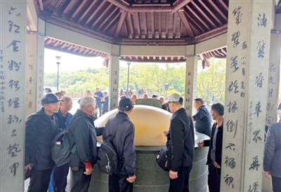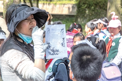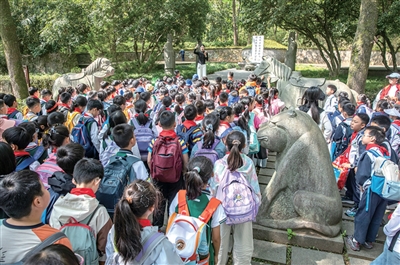 昨天上午9点半,来了一群背书包的孩子,他们是西湖区一所小学三年级学生,趁着春光明媚,来乌龟潭春游,第一站就是祭扫于谦墓。