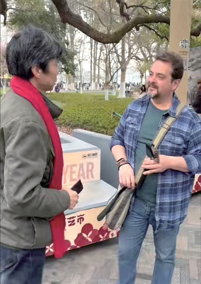 三位老外从不远处走来,王际浙放下书起身,和其中一位打招呼:“Sorry to bother you. I want to talk with you; it’s a way for me to practice English.”(不好意思打扰你们,我想和你聊聊天,这是我练习的一种方式)