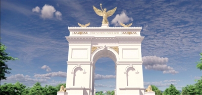 根据美术委员会公布的项目设计方案和效果图,这座“凯旋门”将位于林肯纪念堂和阿灵顿国家公墓之间的纪念环岛上。拱门从底部到装饰顶端将高达250英尺(约合76.2米),建成后将比林肯纪念堂高出很多,还将配有一系列金色装饰。