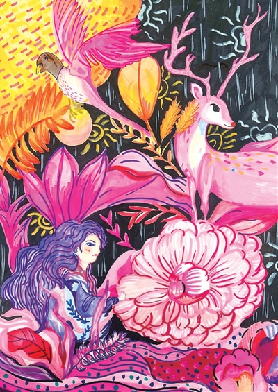 插画狮:《粉焰秘境中的守望》杭州市崇文未来学校三(3)班 吴星仪