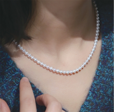 比如直播间会为大家带来的五星欧若拉级中米珍珠项链。4~5mm的中米点位市面上比较少,可以单戴,也可以叠戴,非常好搭配。