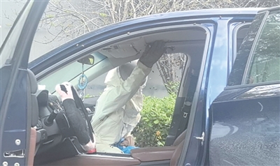 4月9日14时30分,汪先生将车子停在钱塘区一处露天停车场,去附近超市买东西,15分钟后回到车旁一看,副驾驶座车窗顶部把手处几十只蜜蜂正在筑巢。