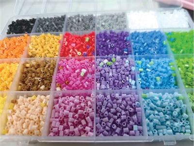 “豆”其实是五颜六色的小塑料管,拼装成图案后,用电熨斗加热,使其边缘软化粘连,最终形成图案。拼装过程既解压又充满想象力,受到年轻人和孩子们的欢迎,但其配套加热设备成了最大的安全隐患。
