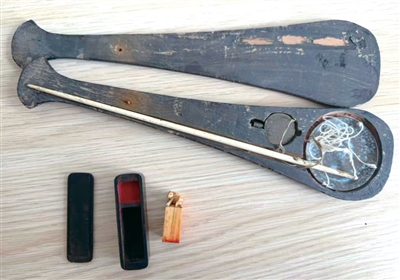 父亲董洪基留下的象牙秤和象牙印章