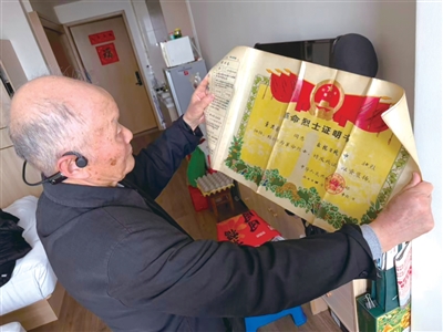 董志伦手持父亲的革命烈士证明书
