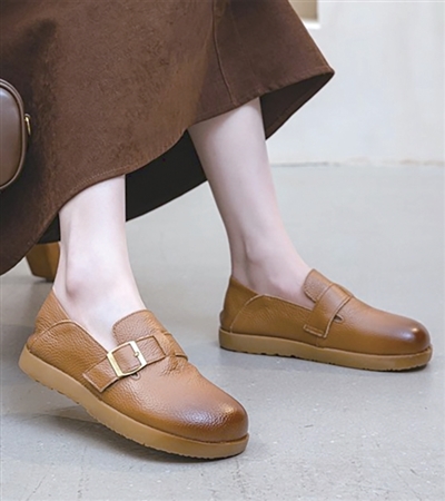 精品实体店热销款,鞋面采用头层牛皮材质,柔软舒适,搭配平跟设计,久穿不易累脚。
