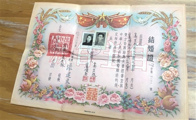 结婚证一式两份,男女双方各执一份,高女士捐赠的是父亲高立林的那份,另一份收藏在家中。