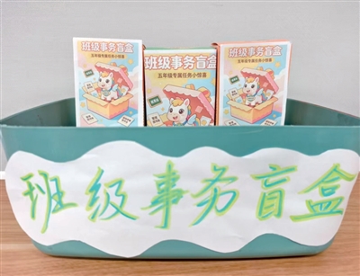 说干就干。我用彩色卡纸折了30个小纸盒,每个盒子上贴一个编号,整整齐齐码在一个饼干铁盒里。铁盒上贴了一张手写标签——“班级事务盲盒”。第一次把它捧进教室的时候,孩子们的眼神瞬间亮了。