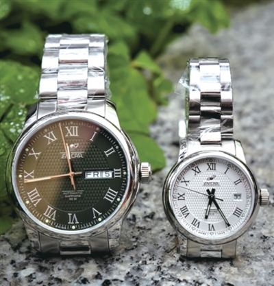 绍兴的张大哥带着妻子一同来逛展,各自挑选了心仪的腕表——妻子戴上了英纳格蓝牌系列绿盘款,优雅又亮眼;张大哥则选择了浪驰,低调又大气。一对手表,满满仪式感。