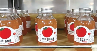 在苍南县大源门食品有限公司十万级净化车间,本地番茄经过NFC果蔬汁生产线,一个200多克番茄秒变成了一瓶不加一滴水的“苍香果”番茄汁,每瓶300克,零售价6元~10元/瓶,成为爱美、减脂、保健人士的最爱饮品,月销量最高时突破18万瓶。