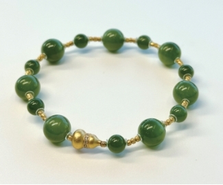 可以搭配一串福禄千重和田玉葫芦手串,寓意特别好,6mm和9mm的碧玉珠子错落分布,有种“大珠小珠落玉盘”的诗情画意。