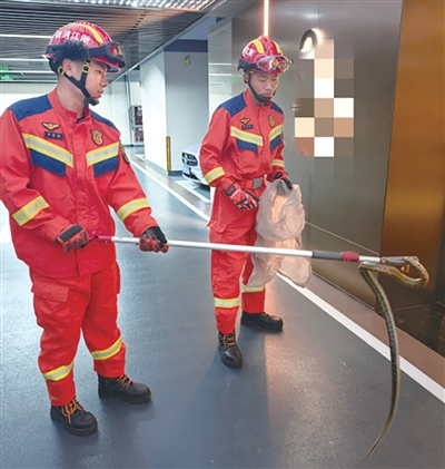 4月19日凌晨4点多,上城区一小区地下二层有蛇出没,消防到场后协助物业成功抓捕并放生。