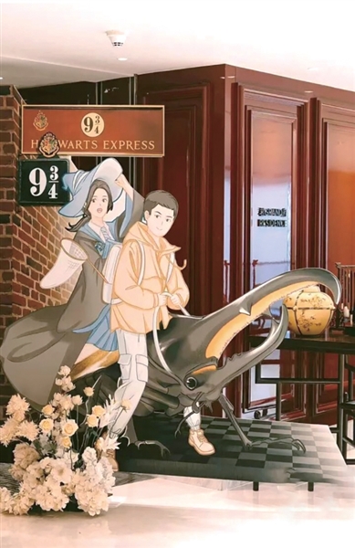 2023年10月,婚期如约而至,但论文还没发表出来。为了弥补这个小遗憾,小李夫妻制作了一张很大很浪漫的立牌摆在婚礼现场——两人一起骑着庞大的长戟大兜虫。