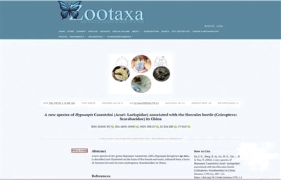 4月10日,国际动物分类学领域的权威期刊Zootaxa在线发表了一篇封面论文,在中国发现一个与宠物甲虫——长戟大兜虫相关的螨类新物种。新物种发现地是杭州,发现者是拱墅区90后夫妇小李和小宋,新物种以夫妻二人姓氏命名,中文名为“李宋下盾螨”(Hypoaspis lisongorum)。