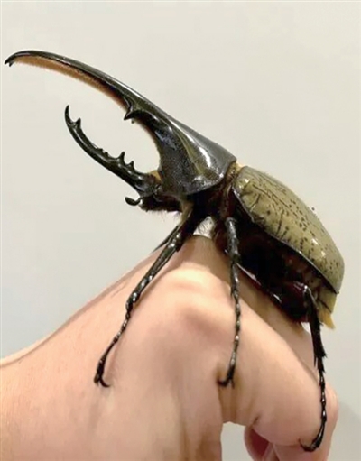 2022年下半年,小李饲养了几只长戟大兜虫,这是世界上体形最长的犀金龟,因其胸角长似戟、背部金黄深受人们喜爱。“这种甲虫很名贵,临近化蛹的时候能有三两多重,托在手上非常震撼,足足有一个成年人的手掌那么大。”小李说,杭州有不少饲养甲虫的同行。“这类兴趣圈子属于异宠圈,区别于饲养小猫、小狗等常规宠物,他们喜欢饲养蜥蜴、蜘蛛、蛇和甲虫。甲虫的幼虫期很漫长,有些长达一年多。”
