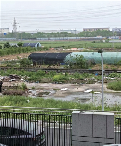 小区背后是块农田,靠近小区200米左右建了两个大棚,里面养有鸡鸭,有些放在外面游荡,鸡鸭的叫声在小区内也能听到。