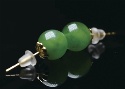 碧玉圆珠耳钉,小小碧玉圆珠,藏尽玉石的细腻柔光。