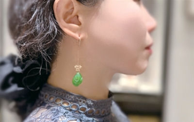 竹韵金蝶耳坠,碧玉凝竹韵,蝶赴温柔来,天然碧玉颜色嫩绿,佩戴起来特别亮眼。