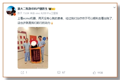 “全球心肺复苏救治成功率极低,这名患者能被救活,是医学技术、救治时机、团队协作共同创造的奇迹。”卢骁表示,患者的幸运,首先在于心跳骤停发生在院内,得到了即刻心肺复苏与ECMO支持,抓住了救命黄金期;其次是依托三甲医院强大的多学科联动能力,急诊、心内科、重症监护等专科紧密配合,实现了全流程精准救治。