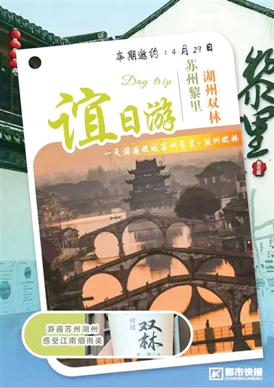 这次超受欢迎的谊日游整装待发,4月29日,我们乘大巴从杭报大楼出发,一日走双城。费用138元(含交通、保险、组织费)。30人成团,一起结伴同游,记得趁早报名,报满即止。