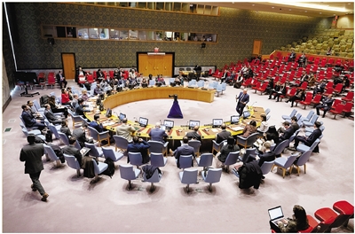 这是12月20日在位于纽约的联合国总部拍摄的安理会会议现场。 新华社发(联合国供图/曼努埃尔·埃利亚斯 摄)