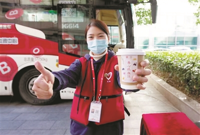 送热豆浆的是西湖市政公司道路管理员陈家杰。一大早,他跟几位同事在三墩区块兜兜转转,只为把一份份暖心热饮送到正在路上除冰的各班组人员手上。