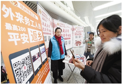 ▶杭州市总工会“平安返乡”车票补贴活动已行之多年。