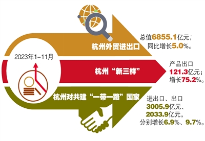 老赛道几近饱和就开辟新赛道披荆斩棘。当前,杭州外贸出口服装、家具、家电等“老三样”稳定增长的同时,以锂电池、光伏产品、电动汽车为代表的“新三样”走俏海外,成为外贸增长新动能。2023年1-11月,杭州“新三样”产品出口121.3亿元,增长75.2%。