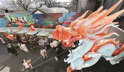 1月12日,一场“齐乐龙龙”新潮年味市集在上城区南星街道馒头山社区笤帚湾63号LOMO创意谷开市。为期三天的新潮年味市集分为民俗潮趣打卡和国潮年味市集两大内容,辖区内文创企业带来了“龙”主题国潮装置、动漫生肖玩偶、改良“土特产”、创新年味美食、手作年俗饰品等各种独具创意的“年货”,让市民游客在这里感受新潮年味,体验花式过年。通讯员 金陆燕 文 记者 李忠 摄