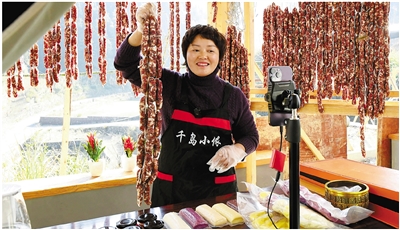 近日,在淳安县浪川乡沃润农业基地里,村民们正一边忙着加工各种腌腊制品,一边忙着包装发运通过电商直播等渠道收揽的订单商品。近年来,该基地流转了2000多亩山地,生态散养了花猪、山羊、鸵鸟、鸡、鸭、鹅等畜禽,种植了各种无公害蔬菜。春节临近,这里出产的生态农产品变身“年货大礼包”热销市场。