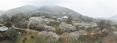 本报讯(记者 涂玥 沈鹏阳 临平微融圈 张建)十里梅花香雪海。随着甲辰龙年新春临近,超山梅花也进入了较佳赏梅期。2月6日上午,伴着漫天鹅毛大雪,第十六届杭州超山梅花节在临平区超山风景名胜区(以下简称“超山景区”)开幕。当天,“焕新升级”的超山景区也同步对外开放迎客。