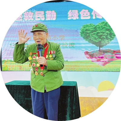 今年的捐种梭梭仪式上,多次荣立战功的老战士郝龙清赞扬学校“培养了甘于奉献、热心公益的少年学子”。他告诉孩子们,“让沙漠变成绿洲,是与国家加强生态文明建设,人与自然和谐共生的目标一脉相承的,而且意义重大!”