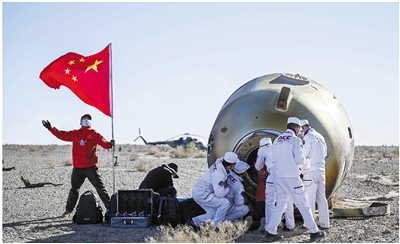 据中国载人航天工程办公室介绍,16时56分,北京航天飞行控制中心通过地面测控站发出返回指令,神舟十七号载人飞船轨道舱与返回舱成功分离。之后,飞船返回制动发动机点火,推进舱与返回舱分离,返回舱成功着陆,担负搜救回收任务的搜救分队及时发现目标并抵达着陆现场。返回舱舱门打开后,医监医保人员确认航天员身体健康。