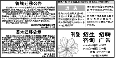 分类广告 刊登热线:85052695 接稿QQ:978802417