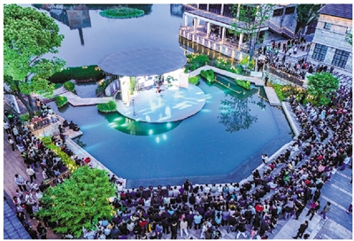 新市古镇·运河新天地水上舞台。通讯员 蔡俊 摄