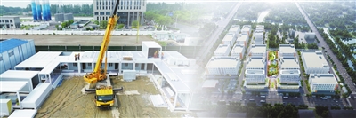 钱塘(新)区前进MAH产业园项目效果图。 建设中的钱塘(新)区前进MAH产业园项目。