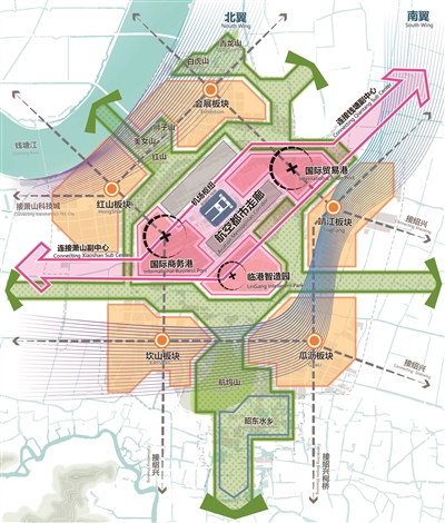 2023年底,杭州临空经济示范区国土空间规划、启动区详细规划和产业规划相继获批,杭州“东西向”城市中轴线上将再建一座“翼城”。它们均回答了关于“制高点”的历史使命,围绕萧山国际机场建一座航空大都市,打造临空产业创新发展高地和世界级开放门户。