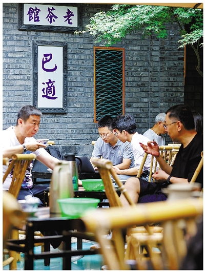 图②:人们在成都太古里大慈寺内的茶社喝茶。