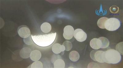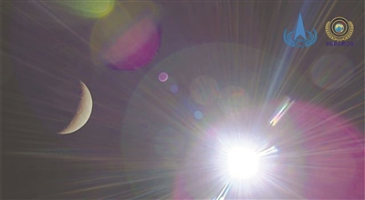 巴基斯坦立方星拍摄的日月合影,左侧为月球,右侧为太阳(5月9日14时38分摄)。