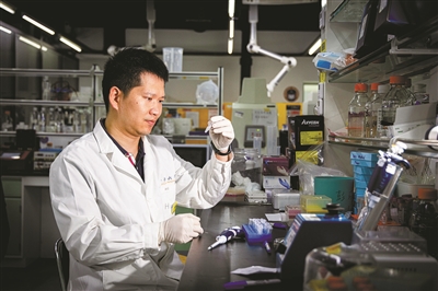 西湖实验室人工智能药物设计核心实验室负责人胡奇正在进行实验。