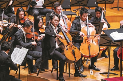 当晚联袂演绎的爱德华·埃尔加e小调大提琴协奏曲,是作曲家献给妻子的安魂曲和自己的“天鹅之歌”。虽有杜普蕾版本的珠玉在前,但秦立巍用其深沉而浓烈的演奏,给现场观众带来一种别样的视听享受。整个过程行云流水又不失深长意味,偶尔柳暗花明的木管乐器给略显悲伤色彩的全曲点缀了些许活力。在不疾不徐的速度中,独奏与乐队之间的默契配合令现场观众屏息聆听,深陷其中。