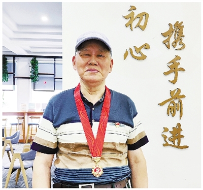 “七一”前夕,在上城区采荷街道荷花塘社区,社区第一党支部书记、76岁的老党员曹金传,戴上沉甸甸的“光荣在党50年”纪念章,站在“不忘初心、牢记使命”八个大字前,笑眯眯地留下了一张照片。